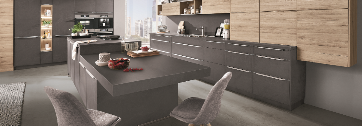 Nous avons donc fait le déplacement pour découvrir ces nouveautés. Ainsi, en 2018, nous pourrons vous présenter 9 nouvelles façades dont un gris céramique dans la gamme 1 et un magnifique décor Ardoise Gris dans la gamme 4. Onze nouveaux plans de travail font leur entrée dans le catalogue dont plusieurs Décors bois très tendances. Une des innovations majeures de cette année est l’exclusivité obtenue pendant un an de 3 plans de travail XTRA encore plus résistants et permettant l’encastrement des plaques de cuisson et éviers affleurants !