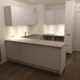 L’espace cuisine de ce logement était relativement contraignant : les éléments électroménager était rassemblés sur un même linéaire et le souhait de l’acquéreur était de bénéficier d’un retour bar pour avoir plus d’espace de travail.